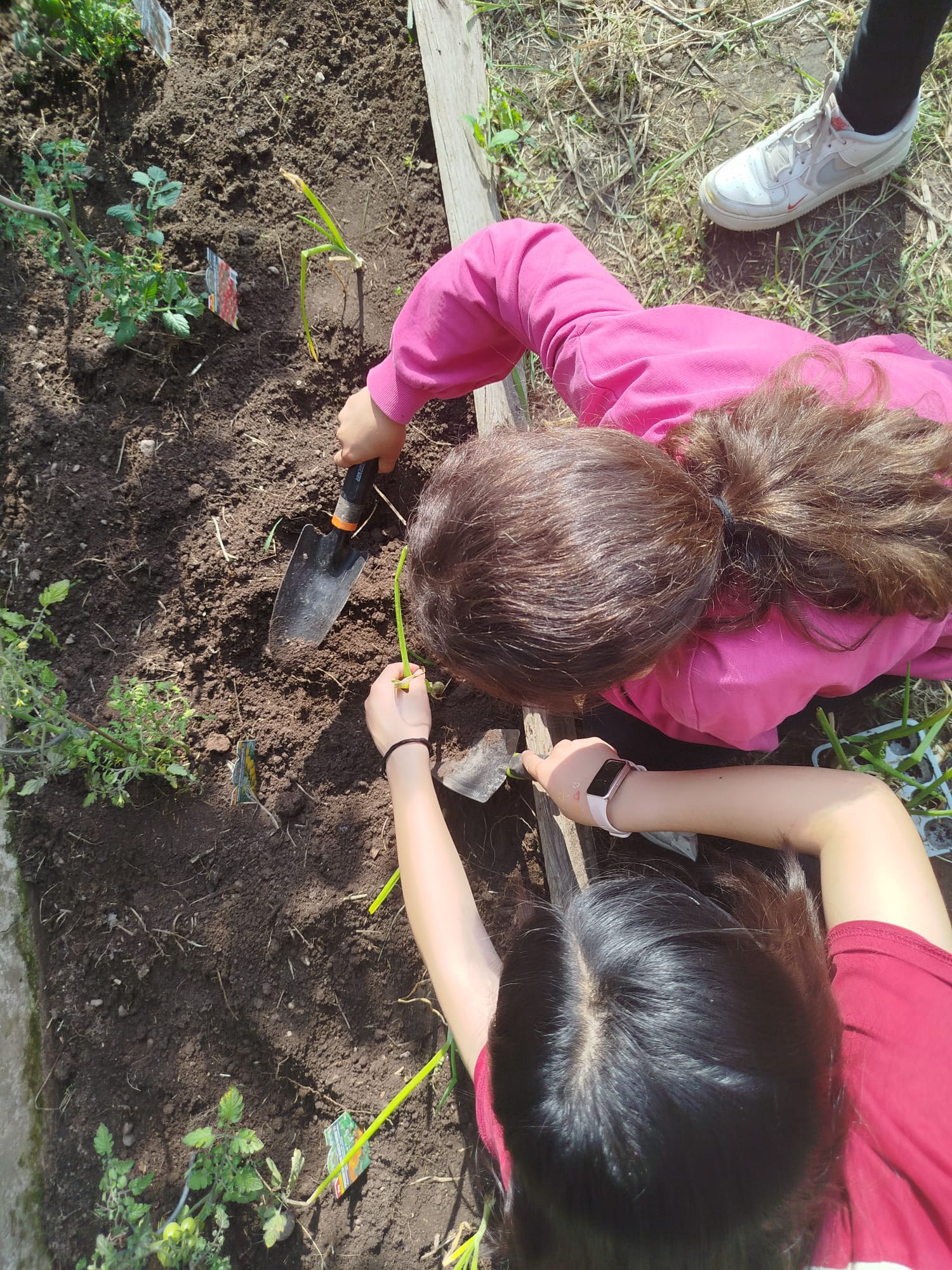 Gli alunni e le alunne della classe 4B hanno trascorso a maggio e giugno tre mattine nell’orto della scuola (1,5 ore ciascuna):