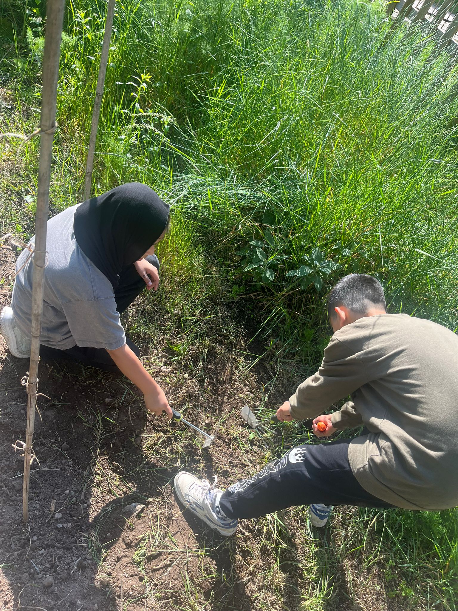 Insieme alle educatrici Sarah e Nur e alla pedagogista scolastica Andrea, i bambini hanno tolto le erbacce, preparato le aiuole, seminato, piantato e annaffiato.