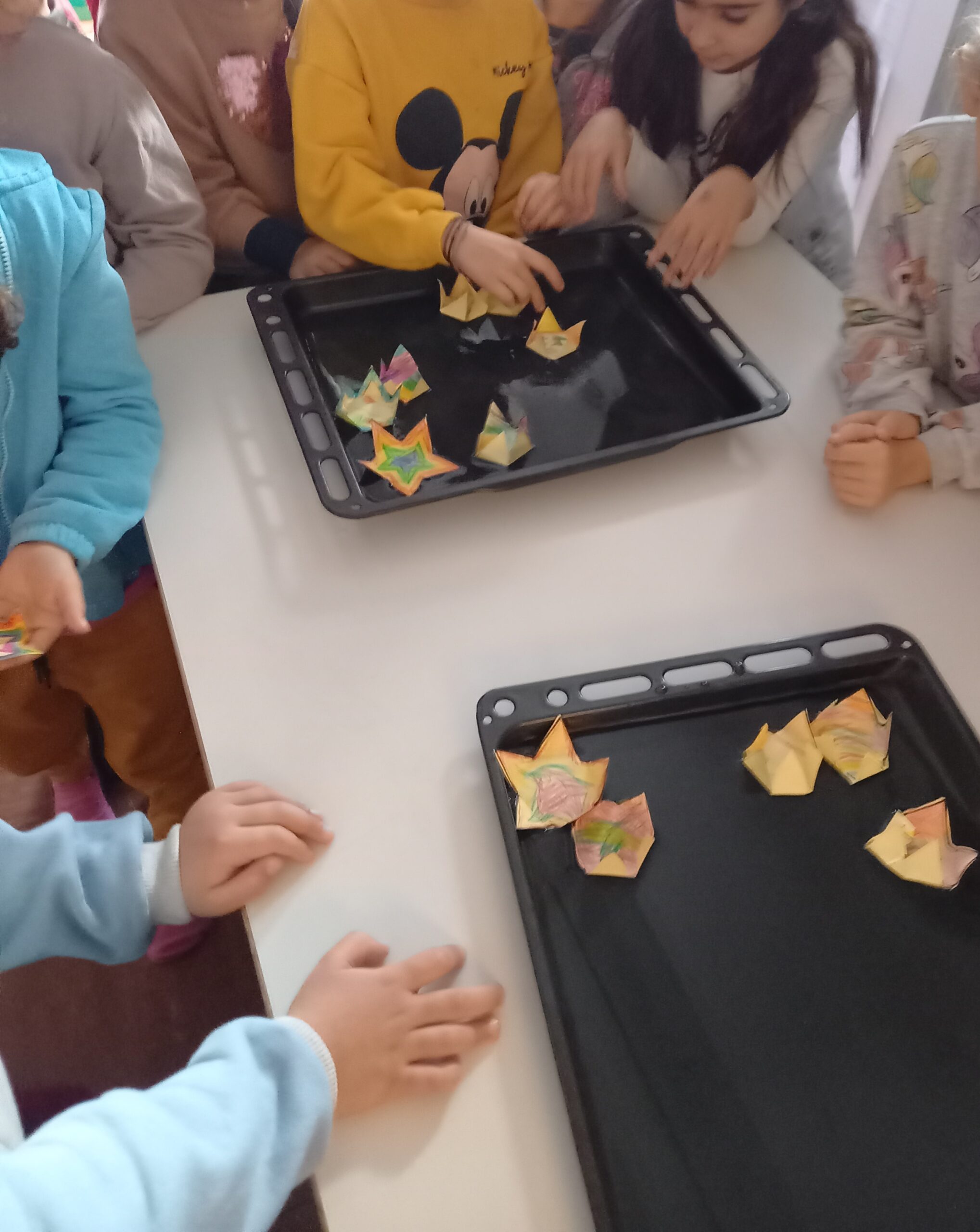 Bei dem kreativen Literaturworkshop “LeseGlück” mit Katrin Klein wurden Weihnachtsgeschichten als Bilderbuchtheater bzw. Schachtelgeschichten erzählt und präsentiert. Dabei wurde sehr viel Wert auf das „dialogische Vorlesen“ gelegt, d.h. die Kinder sollten miterzählen, Fragen stellen und sich über das Gehörte austauschen. Das machte sehr großen Spaß und alle waren mit Begeisterung dabei. Zum Schluss wurden noch Wunschsterne gebastelt, die sie durchs offene Fenster auf die Reise schickten.