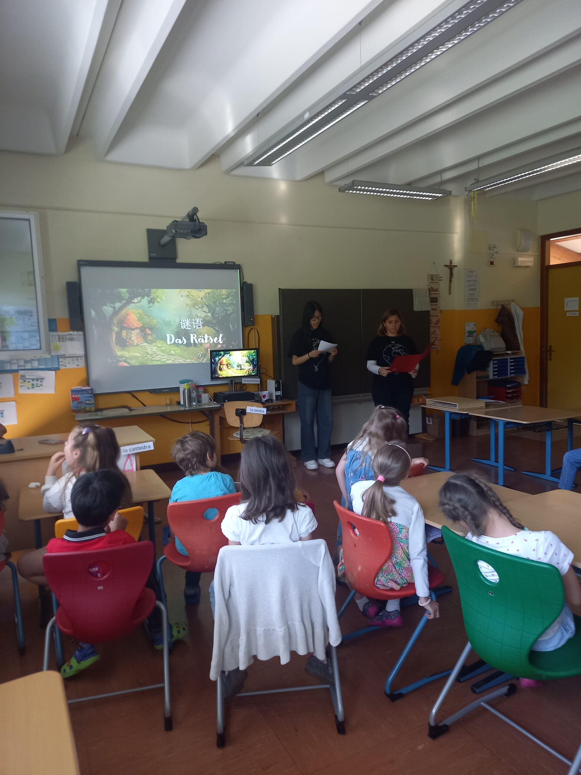 Bereits zum dritten Mal in Folge, kamen die SchülerInnen des Sozialwissenschaftlichen Gymnasiums mit verschiedenen Lesungen in die Grundschule Pestalozzi. Sie lasen den GrundschülerInnen mit Hilfe von digitalen Tafeln, Kamishibai und Plakaten in verschiedenen Sprachen vor. Ein kunterbuntes Buffet sorgte zum Abschluss für einen regen Austausch in vielen verschiedenen Sprachen bei Klein und Groß und für viel Spaß und Freude.